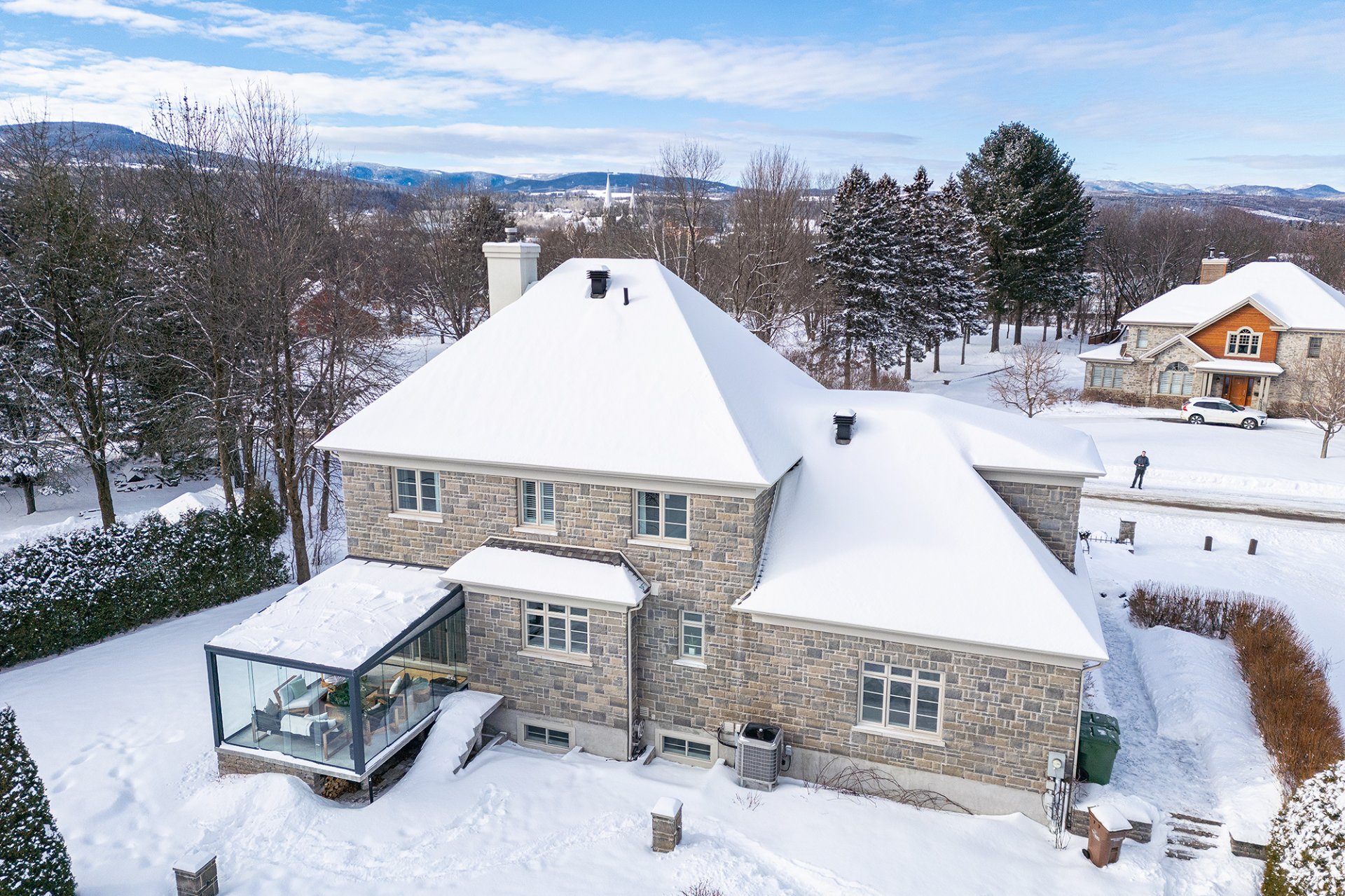 Prestigious home located 1 km from downtown in the upscale Baie-Saint-Paul neighborhood. This superb, modernly renovated property offers a huge, private lot with no rear neighbors, spanning over 22,000 sq. ft., on a dead-end street. It was designed to require minimal maintenance. It features a magnificent sunroom, an outdoor kitchen, and a heated in-ground pool. Upstairs, you'll find four bedrooms (the ground floor office can be converted into a fifth). You'll be charmed by its bright living areas, wood-burning fireplace, gym, home theater room, wine cellar, and double garage!