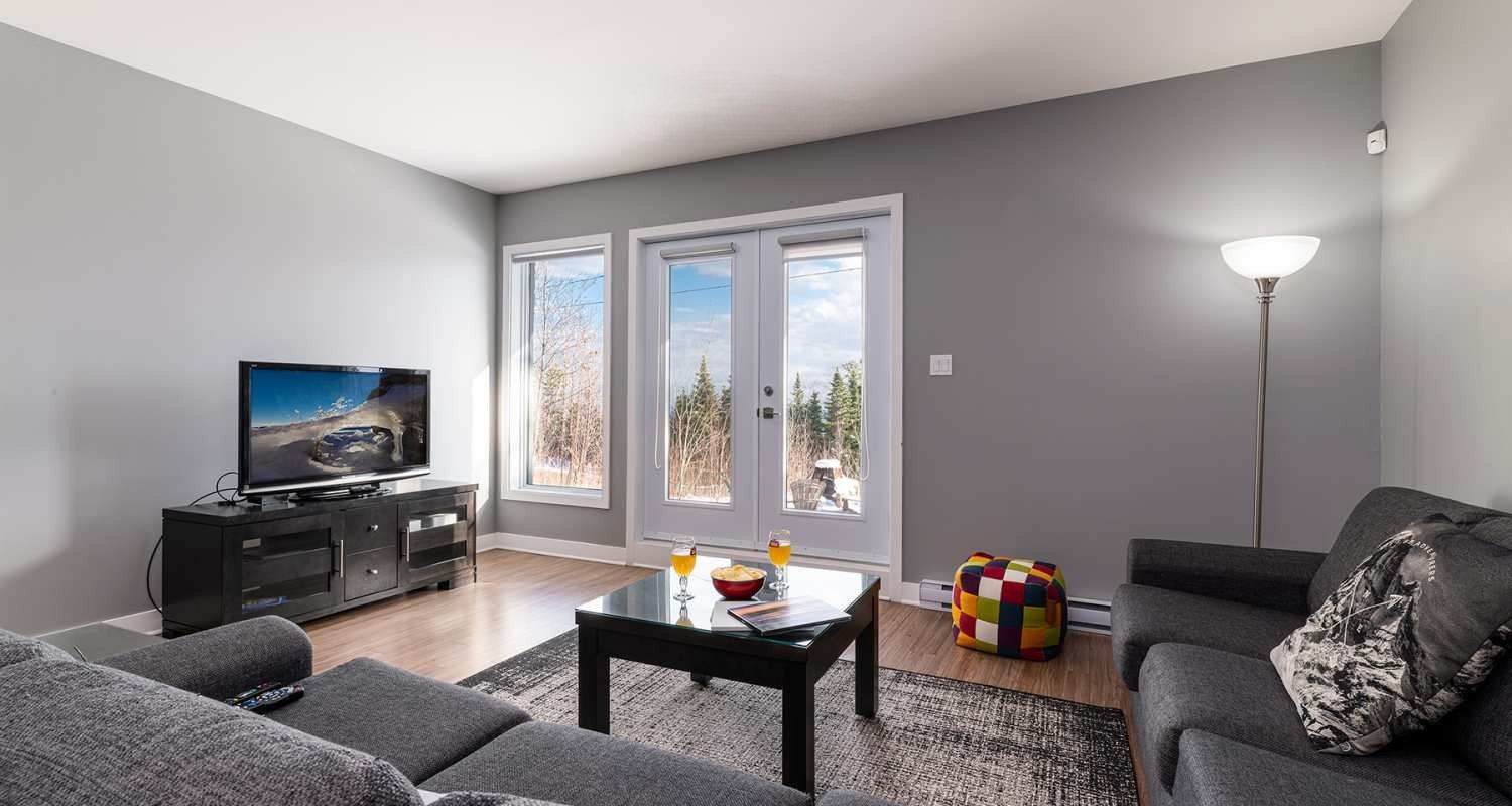 Located in Petite-Rivière-Saint-François, near the Massif de Charlevoix, this carefully decorated contemporary semi-detached home offers spectacular views of the St. Lawrence River and surrounding mountains. Its high ceilings and generous windows flood the open-concept living area with natural light, creating a space that is both grand and warm. After a day of skiing, hiking, or mountain biking, enjoy a comfortable and inviting interior where relaxation and nature meet perfectly. A strategic location for lovers of the outdoors and magnificent landscapes. The property must be sold together with #centris 17907101