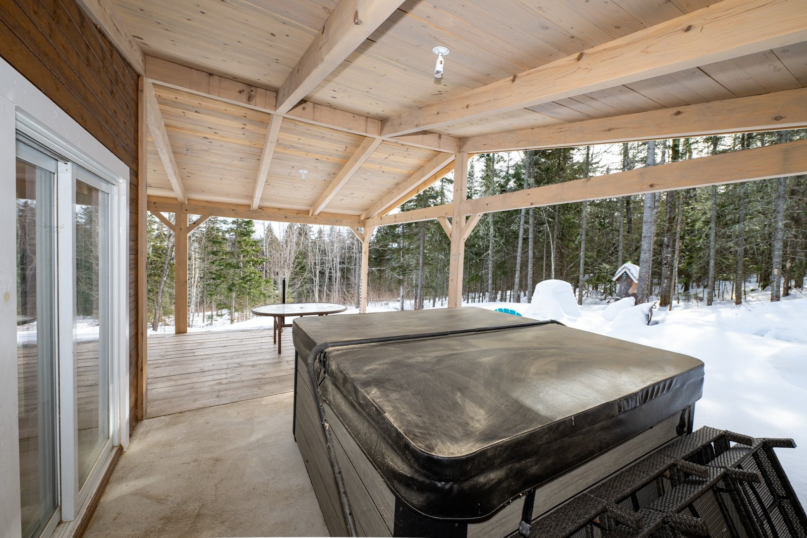 - Luminaires, lave-vaisselle, cuisinière, réfrigérateur, micro-ondes, laveuse et sécheuse, table salle à manger, SPA (le tout laissé sans aucune garantie)